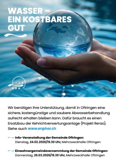 Wir benötigen Ihre Unterstützung, damit in Oftringen eine sichere, kostengünstige und saubere Abwasserbehandlung aufrecht erhalten bleiben kann. Dafür braucht es einen Ersatzbau der Kehrichtverwertungsanlage (Projekt Renzo).